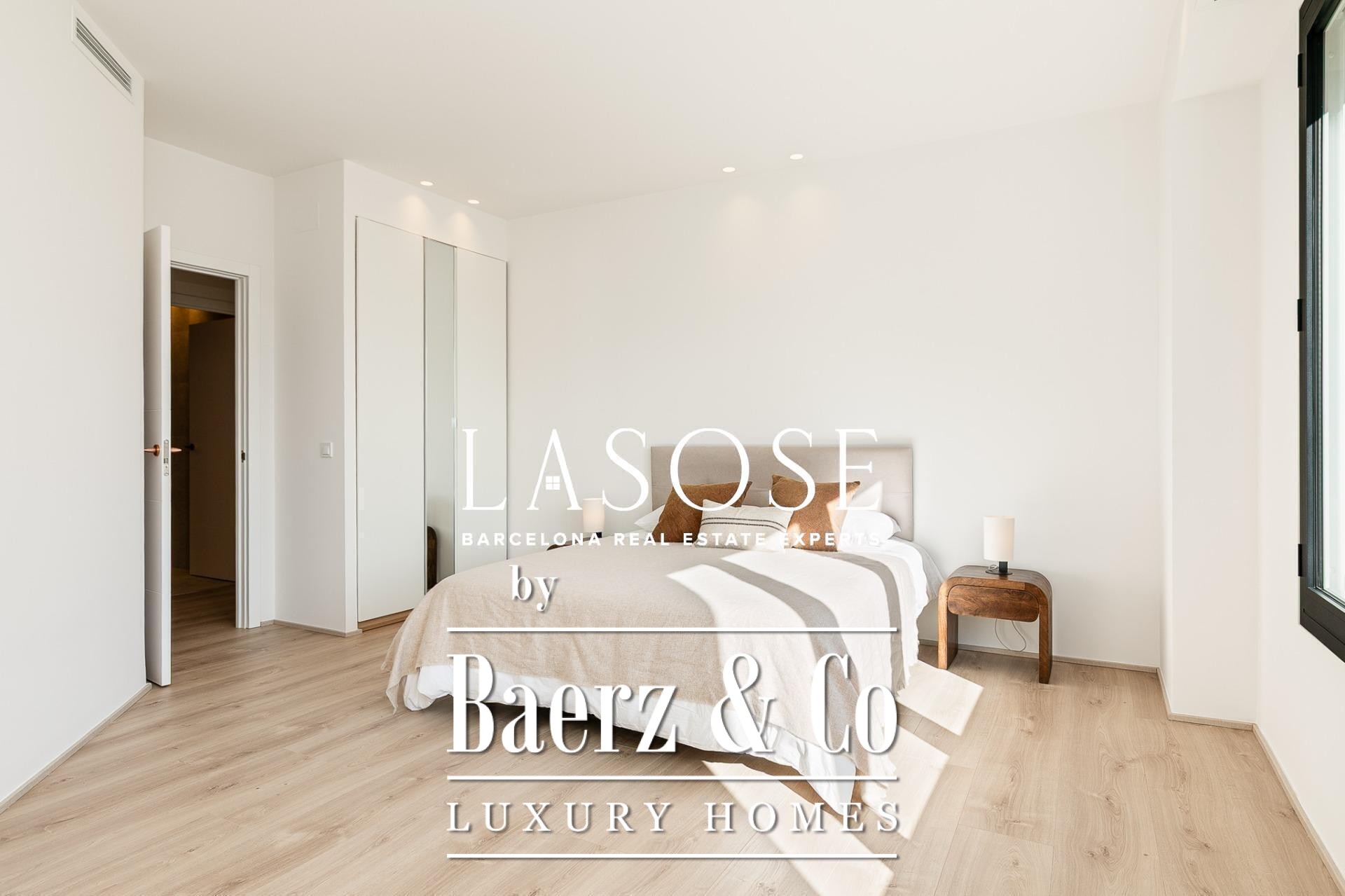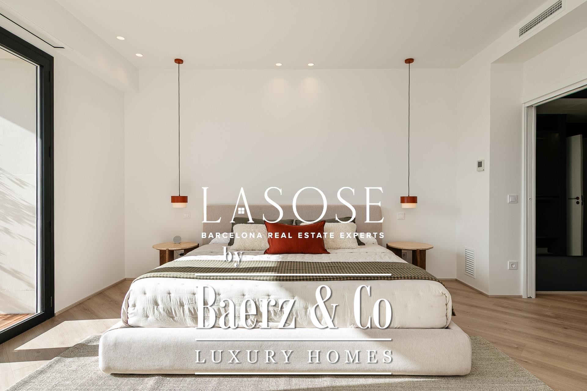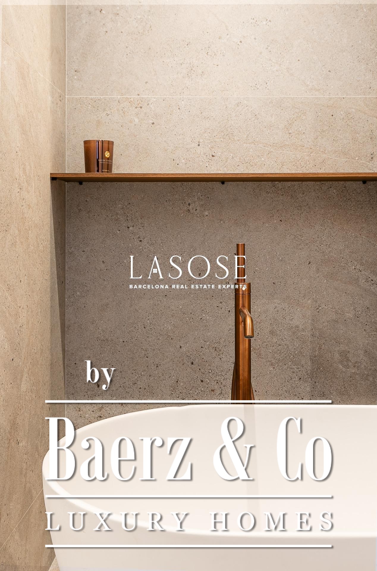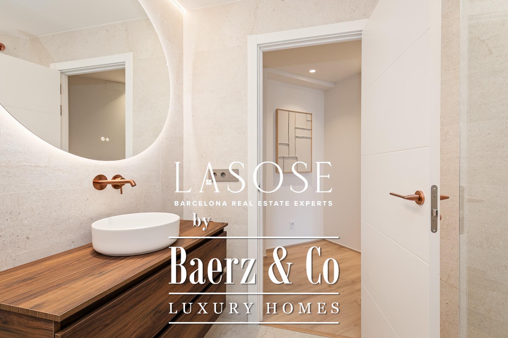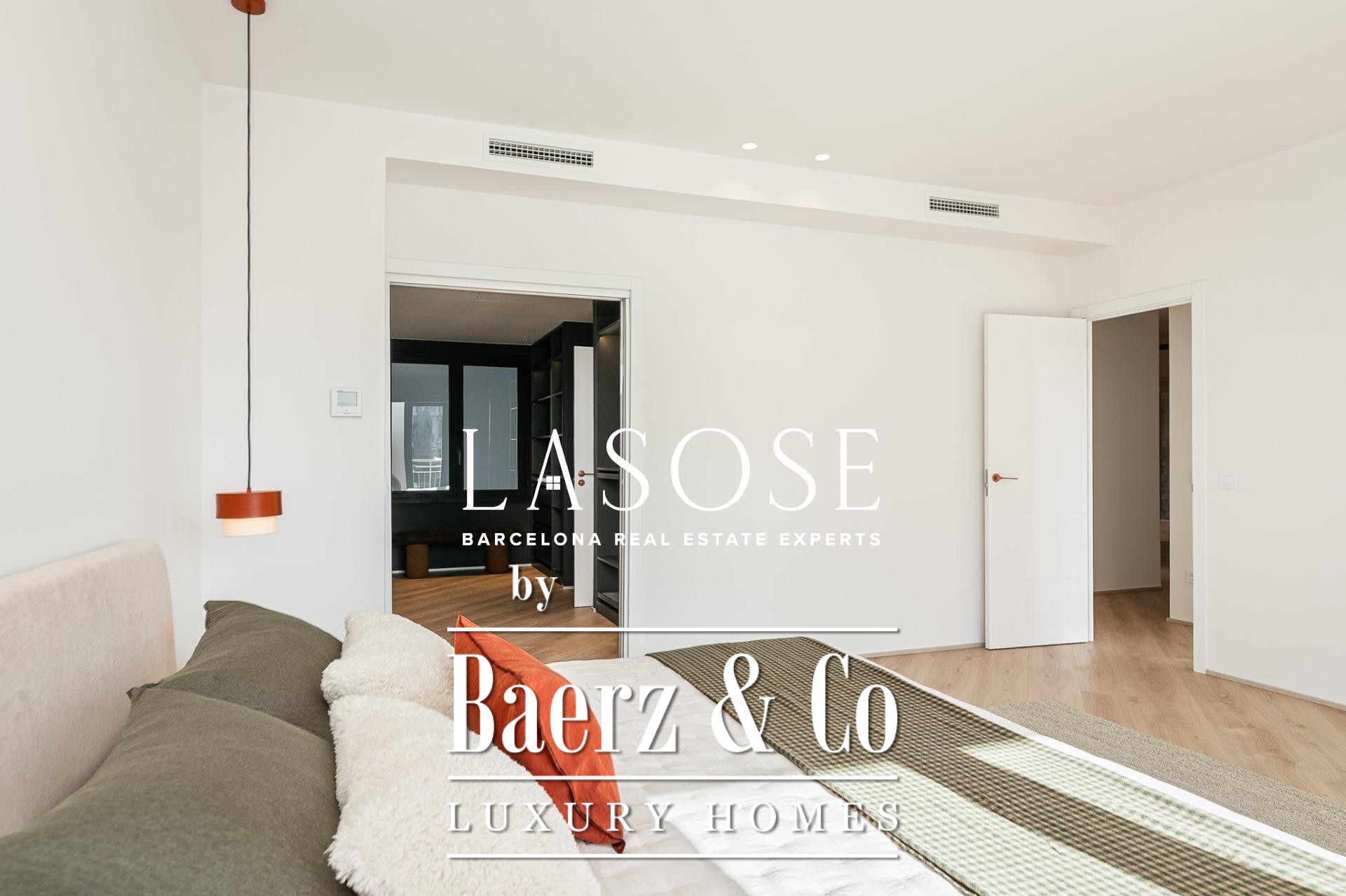 公寓经过全面翻新,甄选高端材质。宽大的东南朝向落地窗让阳光洒满慷慨的室内空间以及开放式的90平方米客餐厅。起居室的门直通转角全景露台,可俯瞰绿树成荫的林荫大道与Plaça Mossèn Jacint Verdaguer广场。厨房由Santos设计,配备Bosch家电,中心为社交中岛,内设酒窖与咖啡区,旁设储藏室,保证收纳私密。