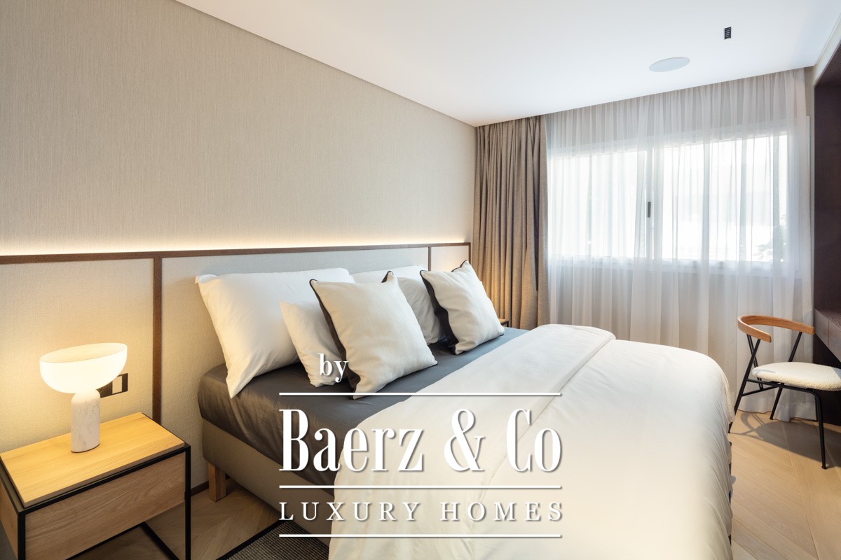 厨房配备大理石饰面及隐蔽式家电布局,无论精致待客还是日常生活都游刃有余。宽敞的有顶露台将室内空间向外延展,适合户外用餐与休闲放松,主卧与客厅均可直接通往。三间卧室各自配有高档套内卫浴,主卧配备隐私玻璃隔断与灰色石材双台盆,营造出专属安静休憩角落。