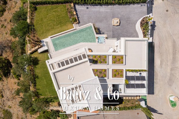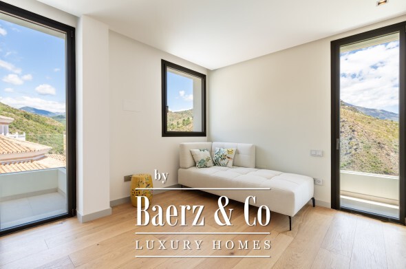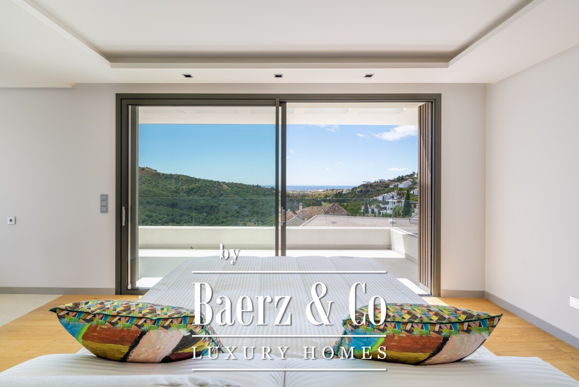 Marbella别墅坐拥海景与山景,坐落于宁静的Lomas de la Quinta高级门禁社区,以私密与平和氛围著称,尽显精致生活格调。这座建筑面积764平方米的六卧室别墅坐落于1,377平方米的地块上,现代建筑风格融合天然材质,自然采光与宽阔空间相得益彰。317平方米的露台以及两处起居区均可欣赏地中海海岸及Sierra de las Nieves山脉美景,宽大落地窗将壮丽景致尽收眼底。