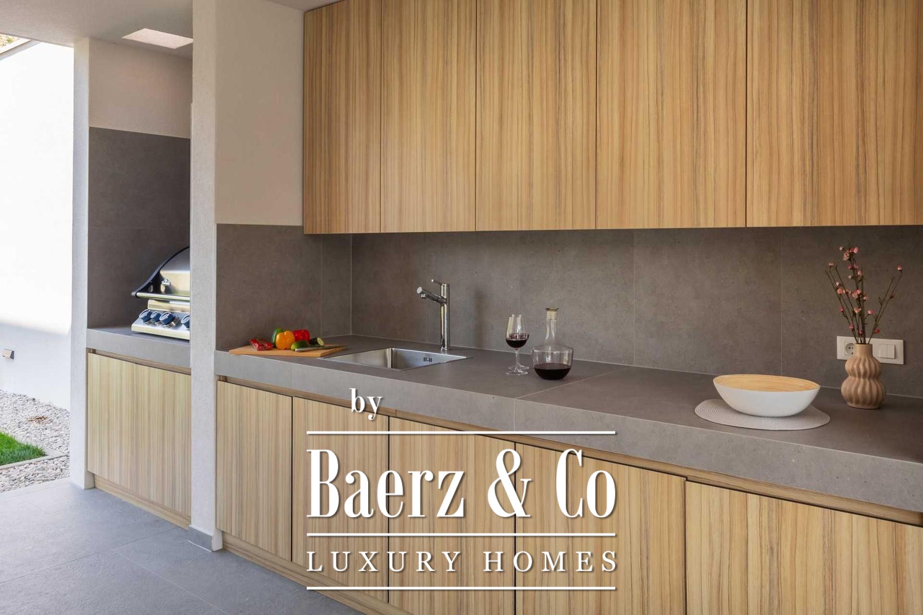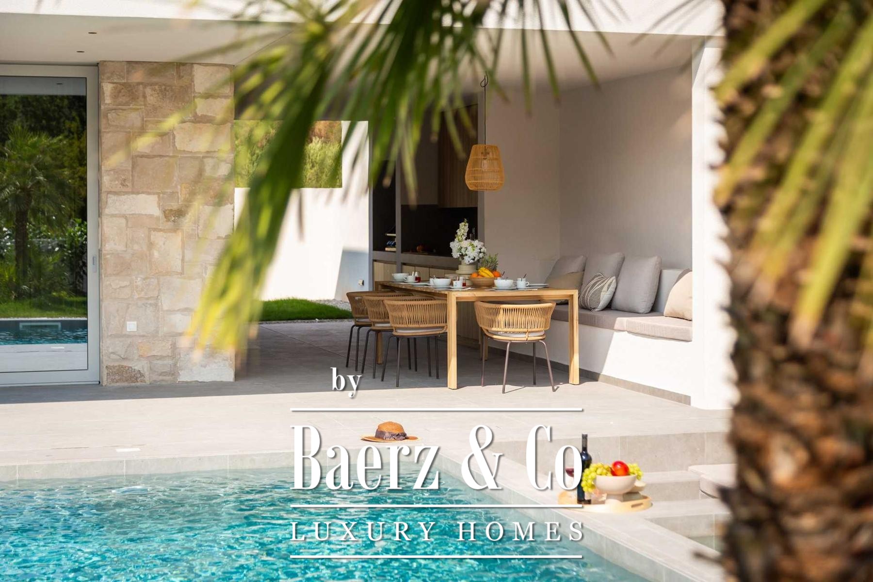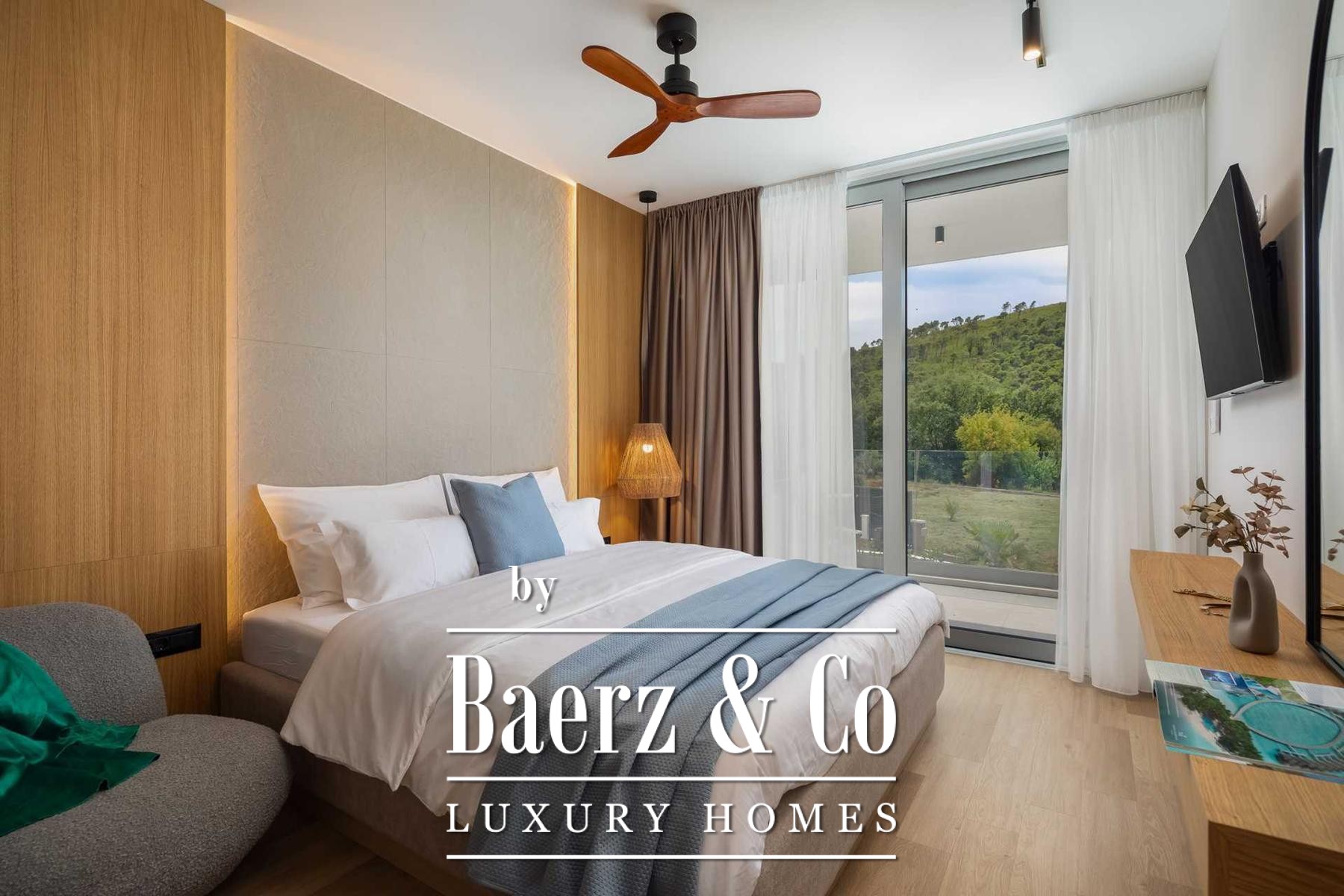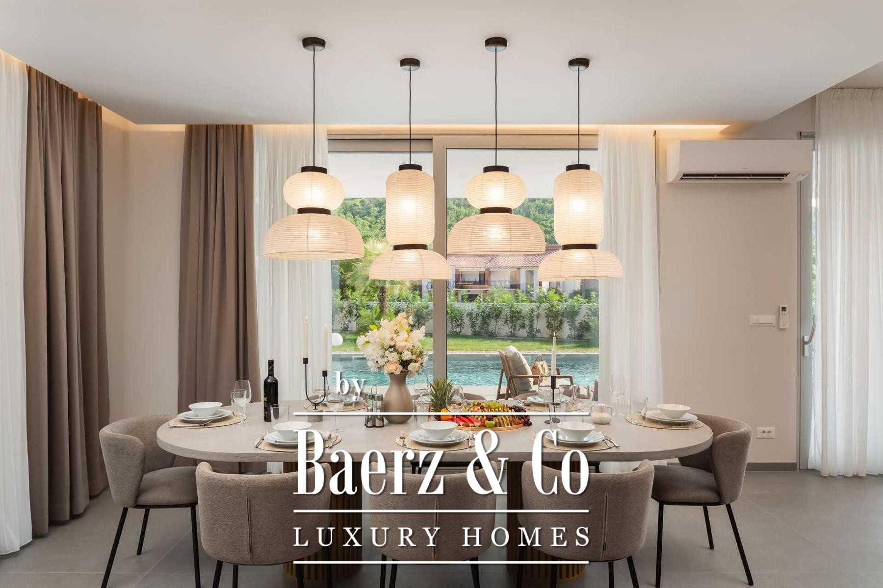 Located in a quiet area in the surroundings of Split, on a spacious plot of 2,090 m², this modern and luxuriously appointed villa with a heated swimming pool offers exceptional comfort, privacy, and functionality. The property is arranged over two floors and is ideal for both private living and high-end rental purposes.The ground floor consists of an entrance hall, a fitness room with sauna, a bathroom, a separate toilet, and a spacious open-plan living area comprising a fully equipped kitchen, dining area, and living room. Large glass walls allow abundant natural light and create a seamless connection between the interior and exterior spaces. From the kitchen, there is access to a covered terrace with an outdoor kitchen and barbecue, while the dining and living areas open onto an additional covered terrace leading to the sun deck and heated swimming pool.The upper floor is dedicated to the sleeping area and features four bedrooms, each with its own en-suite bathroom, as well as a shared storage room.The villa has been designed with great attention to detail, harmoniously combining contemporary design, high-quality materials, and functionality.In addition to the swimming pool and sunbathing area, the fully fenced and landscaped garden offers a children’s playground (football and basketball), a bocce court, and ample parking space for several vehicles.The property enjoys an excellent location, providing peace and privacy while remaining within easy reach of all amenities and infrastructure offered by the city of Split.For further information or to arrange a viewing, please feel free to contact us.